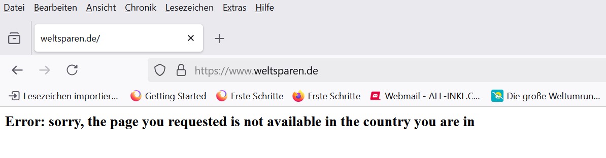 Irgendwann im Indischen Ozean, als wir Afrika näher kamen, konnte ich auf einmal die Seite meiner Bank nicht mehr erreichen. Beim Aufruf der Seite erschien folgende Fehlermeldung:
