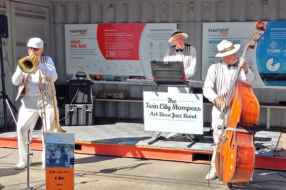 Zurück am Schiff erfreute die Heimkehrer ein Musiker-Trio mit Dixieland-Klängen ...