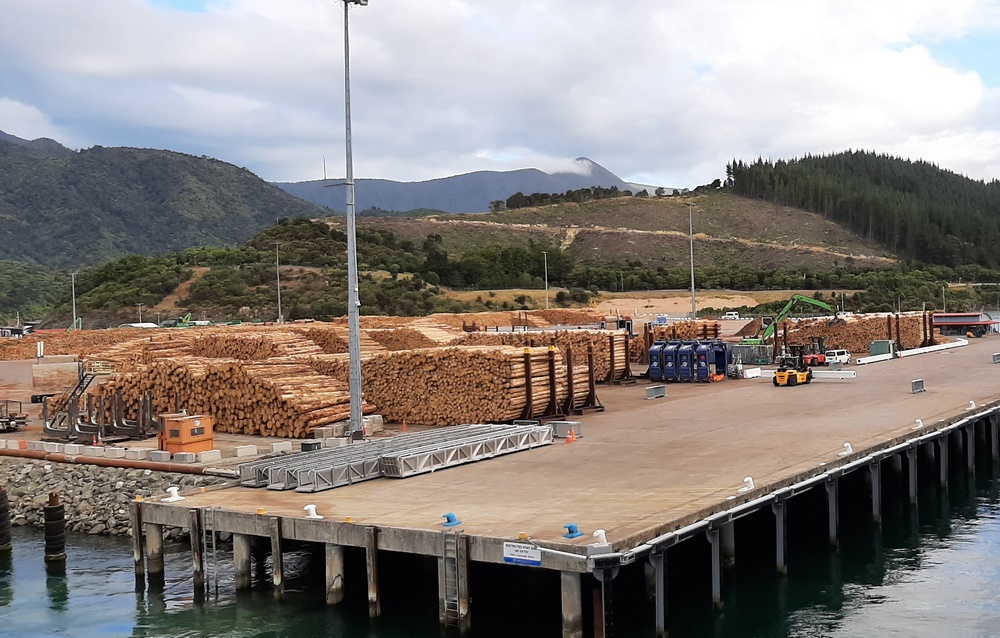 Wie gestern im Hafen von Napier wird auch hier im Hafen von Picton hauptsächlich Holz verschifft.