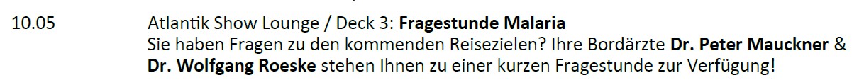 Deshalb wurde heute um 10:00 Uhr kurzfristig eine Fragestunde mit den beiden Schiffsärzten ins Programm aufgenommen.