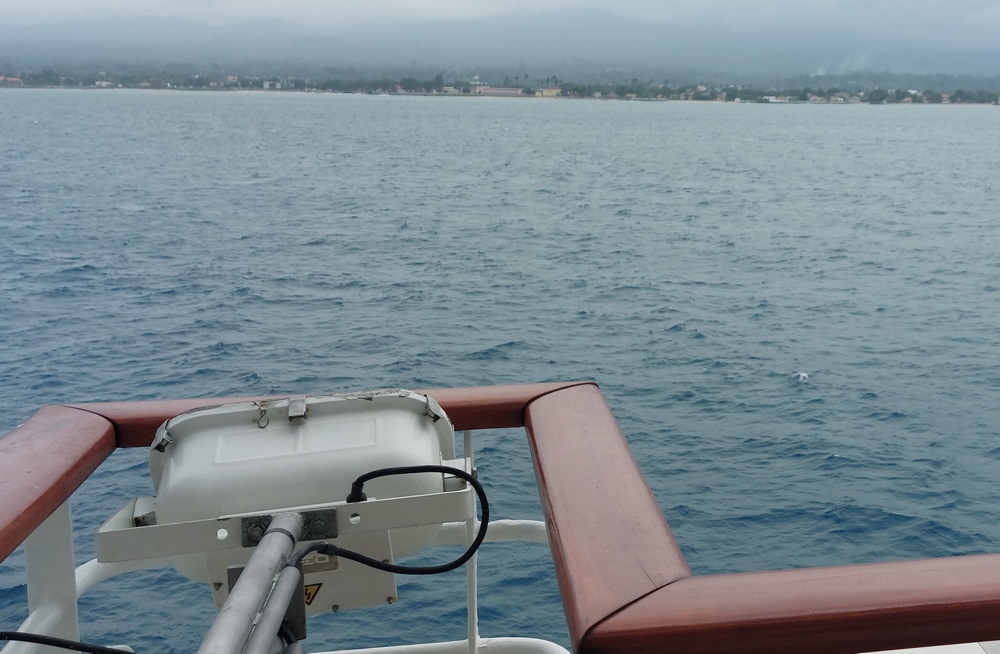 Zwar gibt es bei einer Entfernung von 5 Seemeilen zum Ufer nichts zu sehen bzw. man kann nichts erkennen, aber dafür wurde der Äquator dabei noch zweimal überfahren, wie der Kapitän um 16:00 Uhr augenzwinkernd über Bordlautsprecher verkündete. (Der Äquator verläuft nur ca. 2 Seemeilen südlich von São Tomé.)