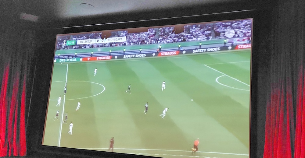 Am Abend, die ARTANIA war schon wieder unterwegs, wurde im Bordkino die Übertragung des DFB-Pokal-Finale Bielefeld vs. Stuttgart gezeigt.