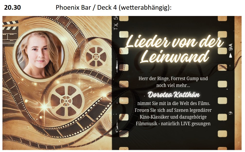 Die aus Schweden stammende Sängerin Dorotea Katthän fesselte mit ihrer gesanglichen Darbietung von Liedern aus verschiedensten Filmen, gepaart mit ausgewählten emotionalen Filmszenen, die Zuschauer.