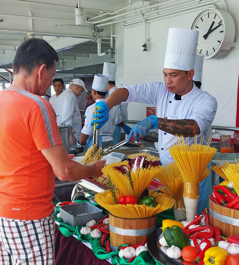 Aber, so versicherte der Kreuzfahrtdirektor, sei das Lido nach wie vor ein vollwertiges Restaurant.