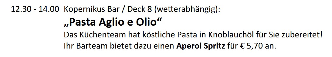 Uns irritierte dabei nur, dass diese Durchsagen weiterhin im Lido-Restaurant erfolgen. Auf unsere Frage nach dem warum, wurde von einem Phoenix Mitarbeiter wörtlich geantwortet: „Weil das Lido zur Public-Area gehört“.