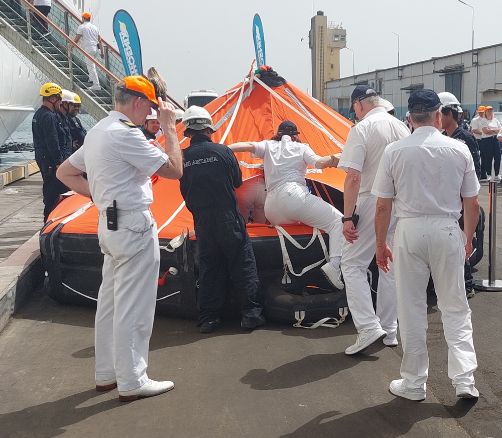 Sodann soll eine Demonstration über den Gebrauch einer Rettungsinsel erfolgen.