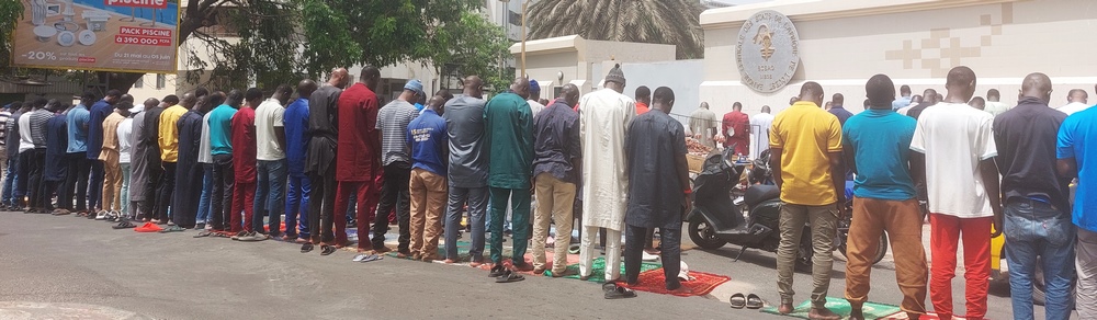 Wir kamen auf der Fahrt zum Hafen durch eine Straße, an der auf beiden Seiten auf einer Länge von mehreren hundert Metern die Gläubigen mit ihren Gebetsteppichen standen, bereit sich hinzuknien zum Gebet.
