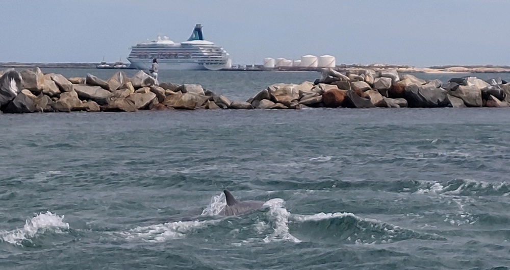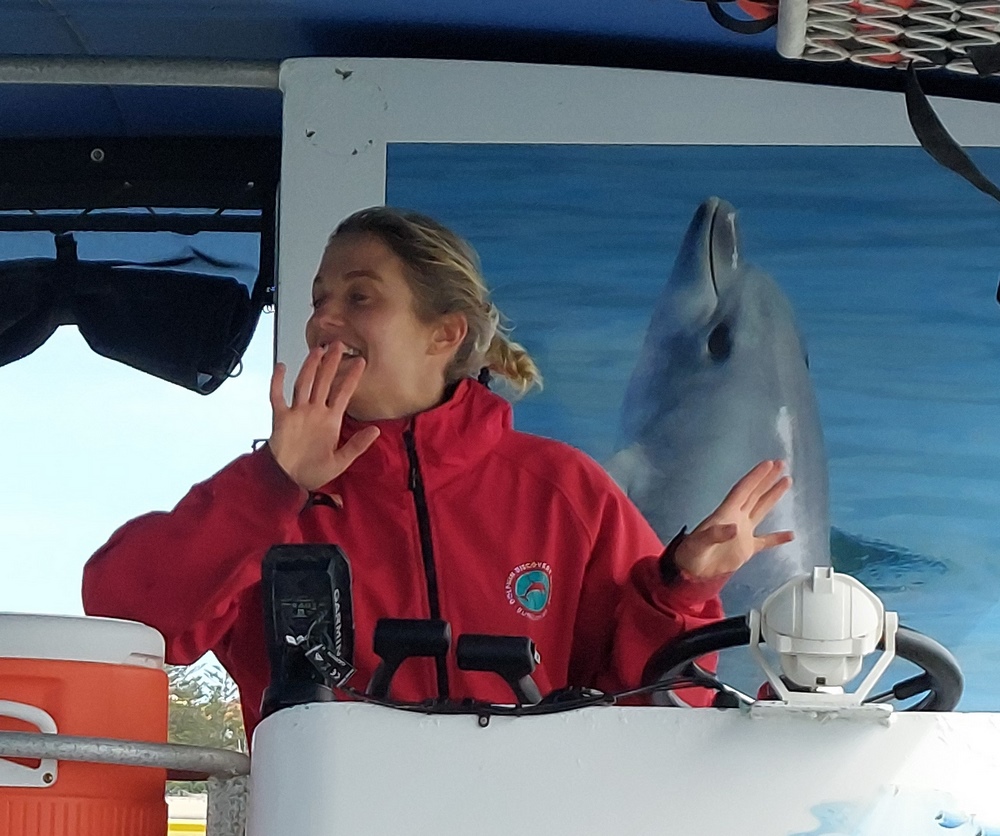 Hier hatten wir eine Dolphin Eco Cruise gebucht, was nichts anders war als eine Bootsfahrt, bei der man hofft, Delfine zu sehen, die hier an der Küste sehr zahlreich sind.