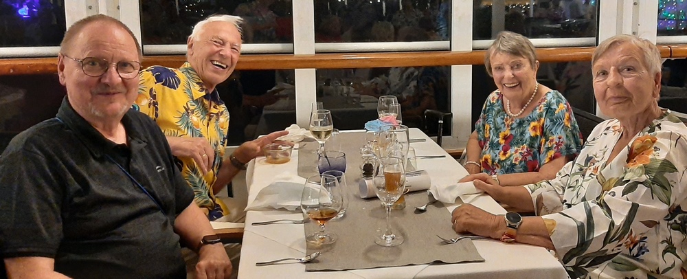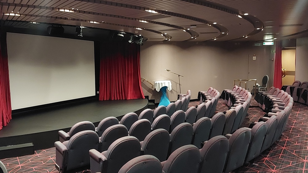 Für den Abend hatte der Kreuzfahrtdirektor ins Bordkino eingeladen und zwar diejenigen Passagiere, die 2020 mit der ARTANIA wegen Corona in Fremantle gestrandet waren.