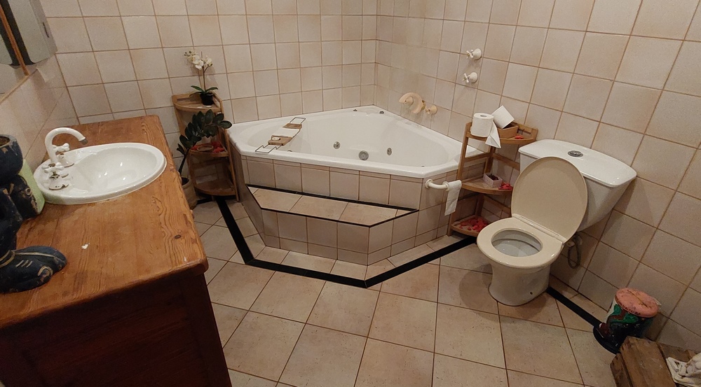 Nach dem Abendessen (Alam Pizza) machten wir es uns auf unserer Terrasse mit direktem Zugang zum Garten gemütlich.