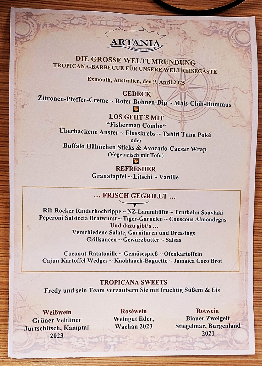 Für den Abend um 18:30 Uhr wurden die Weltreisenden zu einem „Tropicana Barbecue“ in die Kopernikus Bar eingeladen.