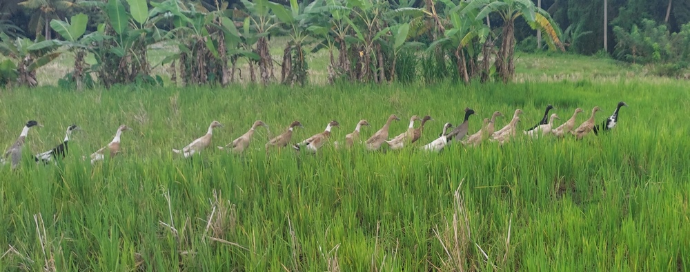 Er führte durch die Reisfelder und umging somit die belebte Souvenirstraße.