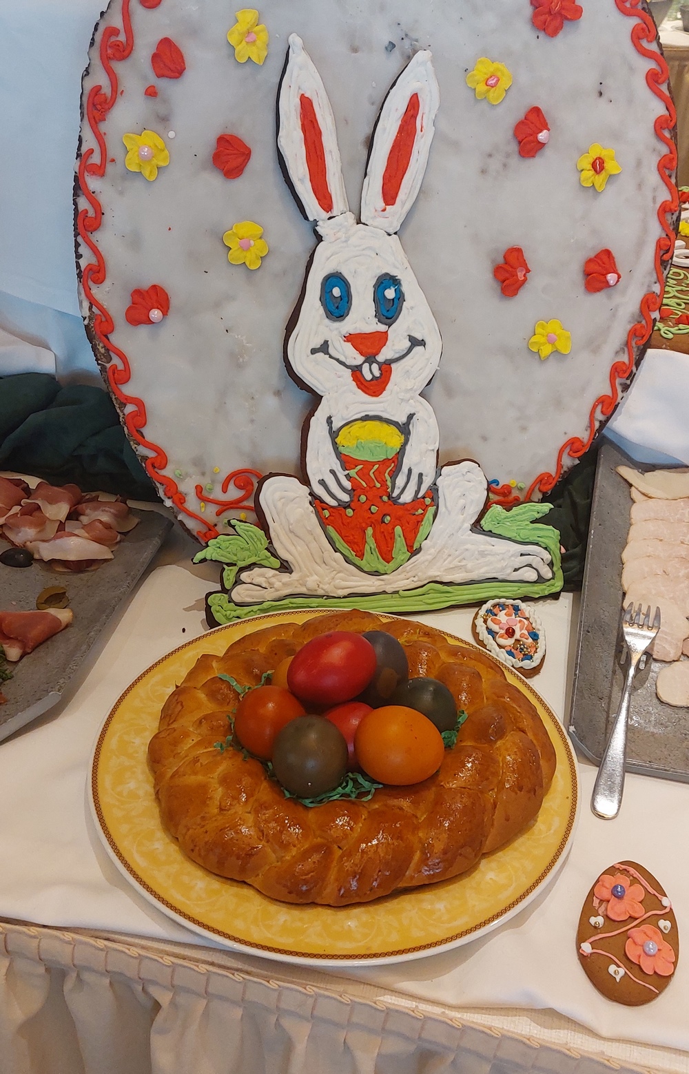 Bereits beim Frühstück hatten uns die Osterbrote angelacht, die verteilt über das ganze Buffett als dekoratives Osternest dazu dienten, dass die Ostereier nicht wegrollten.